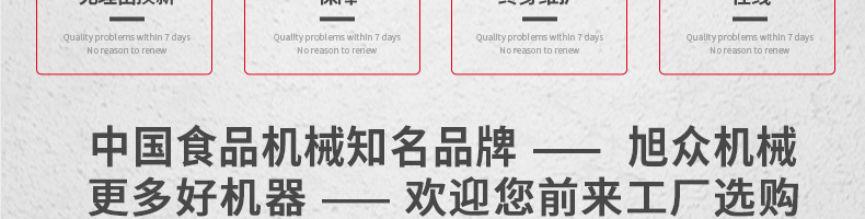 廣州旭眾食品機械有限公司是一家集科研開發(fā),生產(chǎn)設(shè)計,營銷服務(wù)為一體的現(xiàn)代化生產(chǎn)企業(yè)?,F(xiàn)代化生產(chǎn)車間,精湛制造技術(shù),所產(chǎn)機械歷經(jīng)市場重重考驗,不斷贏得海內(nèi)外客戶的贊譽。