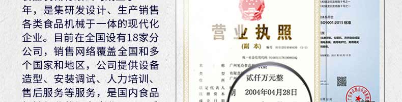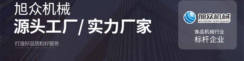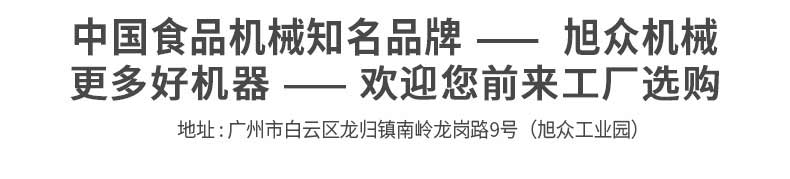 廣州旭眾食品機(jī)械有限公司是一家集科研開(kāi)發(fā),生產(chǎn)設(shè)計(jì),營(yíng)銷(xiāo)服務(wù)為一體的現(xiàn)代化生產(chǎn)企業(yè)?,F(xiàn)代化生產(chǎn)車(chē)間,精湛制造技術(shù),所產(chǎn)機(jī)械歷經(jīng)市場(chǎng)重重考驗(yàn),不斷贏得海內(nèi)外客戶的贊譽(yù)。