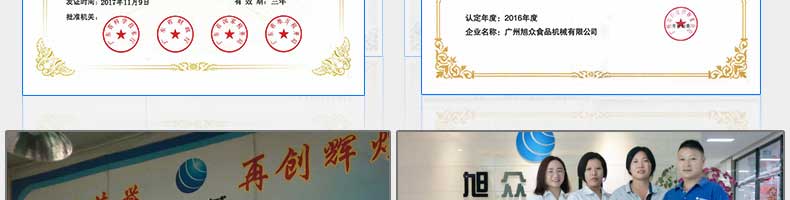 廣州旭眾食品機(jī)械有限公司是一家集科研開發(fā),生產(chǎn)設(shè)計(jì),營銷服務(wù)為一體的現(xiàn)代化生產(chǎn)企業(yè)。現(xiàn)代化生產(chǎn)車間,精湛制造技術(shù),所產(chǎn)機(jī)械歷經(jīng)市場重重考驗(yàn),不斷贏得海內(nèi)外客戶的贊譽(yù)。