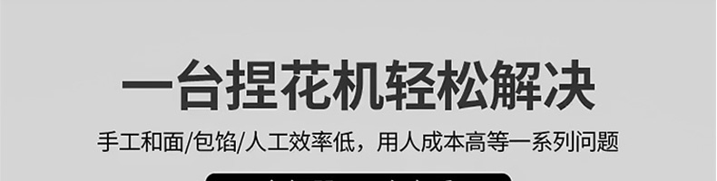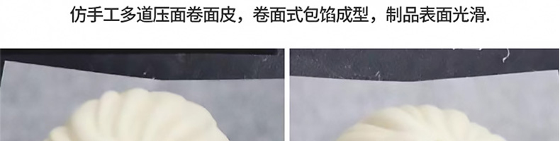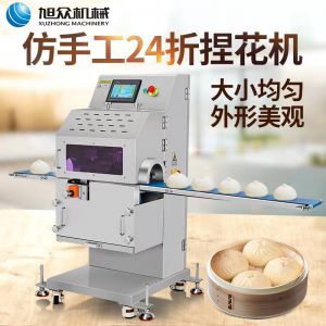 XZ-7200捏花機,一臺捏花機輕松解決:手工和面包餡/人工效率低,用人成本高等一系列問題一臺機器=10個人手工,24折捏花·外形美觀仿手工多道壓面卷面皮,卷面式包餡成型,制品表面光滑。