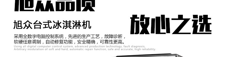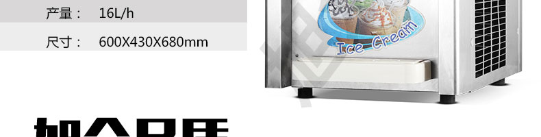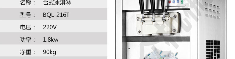 BQL-216T臺式冰淇淋機,●選用國際名牌成熟制冷配套件和高效壓縮機,融合旭眾精湛工藝輔以嚴格的質(zhì)量控制流程,使產(chǎn)品整體性能及品質(zhì)得以全面提升?!癫捎萌珨?shù)字電腦控制系統(tǒng),選用名牌優(yōu)質(zhì)電器元件,先進的生產(chǎn)工藝,故障診斷,軟硬任意調(diào)制,自動修復功能,安全精確,可靠性更高?!駥I(yè)成熟制冷系統(tǒng)設計,選用世界名牌大功率專用壓縮機,大大縮短冰淇淋成型時間,相同時間內(nèi)冰淇淋產(chǎn)量大幅度增加,使您生意火爆時依然得心應手,為您創(chuàng)造財富?!癜踩椒€(wěn)的機械攪拌系統(tǒng),噪音更低、振動更小,使整機運行性能達到國際先進水平?!翊_保進料溫度在0°C~35°C;環(huán)境溫度5°C~40°C勻可正常使用。