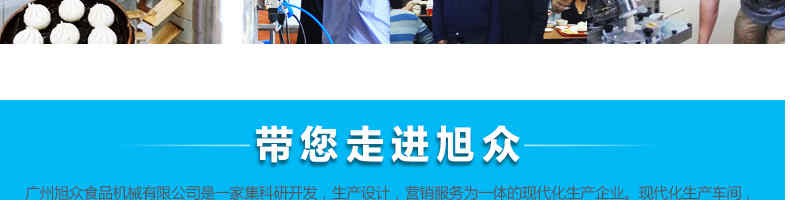 廣州旭眾食品機(jī)械有限公司是一家集科研開發(fā),生產(chǎn)設(shè)計(jì),營(yíng)銷服務(wù)為一體的現(xiàn)代化生產(chǎn)企業(yè)?,F(xiàn)代化生產(chǎn)車間,精湛制造技術(shù),所產(chǎn)機(jī)械歷經(jīng)市場(chǎng)重重考驗(yàn),不斷贏得海內(nèi)外客戶的贊譽(yù)。