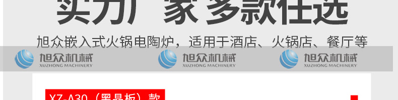 嵌入式電陶爐XZ-A30,實(shí)力廠家·采用高品質(zhì)零配件。廠家直銷,售后無憂。廣州旭眾食品機(jī)械有限公司是集研發(fā)設(shè)計(jì)、生產(chǎn)銷售于一體的現(xiàn)代化企業(yè)。一站式購機(jī),無中間差價(jià)。