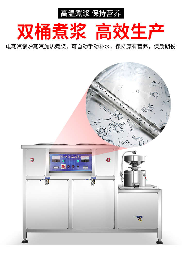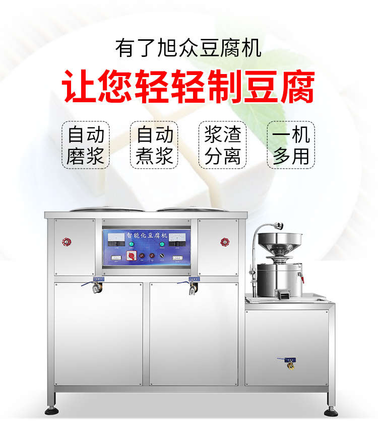 XZ-300型氣動壓榨豆腐機,智能豆腐豆?jié){機,雙桶煮漿高效生產現磨現煮,漿渣分離快速出漿。機器運行穩(wěn)定不銹鋼材質打造,堅固耐用,安全衛(wèi)生,時尚大方,易于清洗。