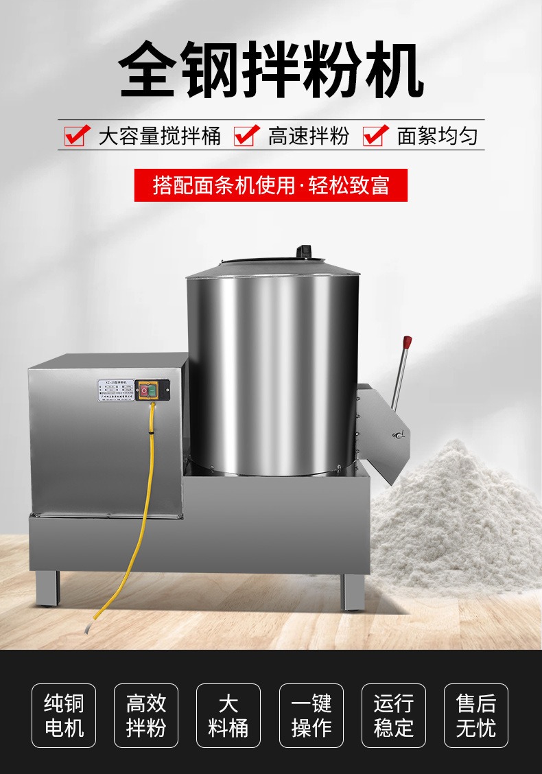 全鋼拌粉機,告別勞累的人工拌粉,360°高效旋轉(zhuǎn)攪拌、均勻。無論是拌粉還是拌面絮,自動拌粉、快速攪拌、攪拌均勻。
