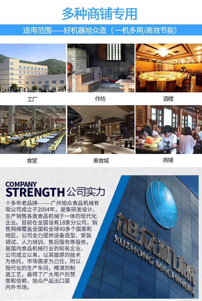 廣州旭眾食品機(jī)械有限公司是一家集科研開發(fā),生產(chǎn)設(shè)計,營銷服務(wù)為一體的現(xiàn)代化生產(chǎn)企業(yè)?,F(xiàn)代化生產(chǎn)車間,精湛制造技術(shù),所產(chǎn)機(jī)械歷經(jīng)市場重重考驗,不斷贏得海內(nèi)外客戶的贊譽(yù)。