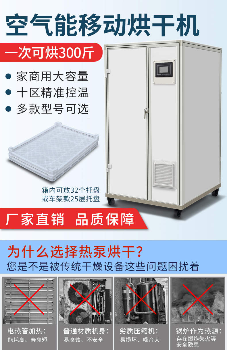 烘干抽濕一體機(jī)(帶烘房),空氣能移動(dòng)烘干機(jī),一次可烘300斤、家商用大容量、十區(qū)精準(zhǔn)控溫、多款型號(hào)可選。智能烘干時(shí)代出類(lèi)拔萃的新體驗(yàn)