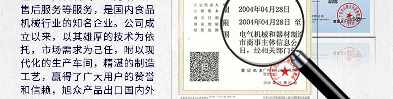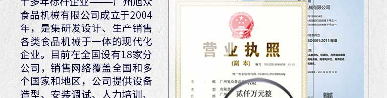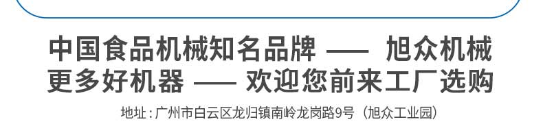 廣州旭眾食品機(jī)械有限公司是一家集科研開發(fā),生產(chǎn)設(shè)計,營銷服務(wù)為一體的現(xiàn)代化生產(chǎn)企業(yè)?,F(xiàn)代化生產(chǎn)車間,精湛制造技術(shù),所產(chǎn)機(jī)械歷經(jīng)市場重重考驗,不斷贏得海內(nèi)外客戶的贊譽(yù)。