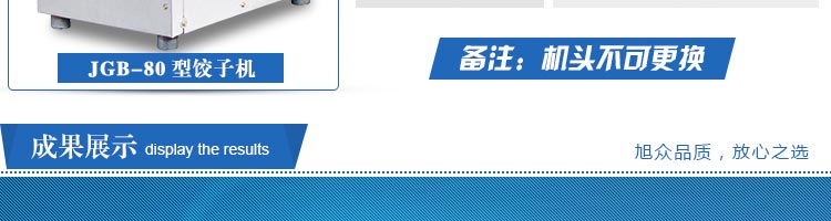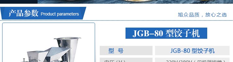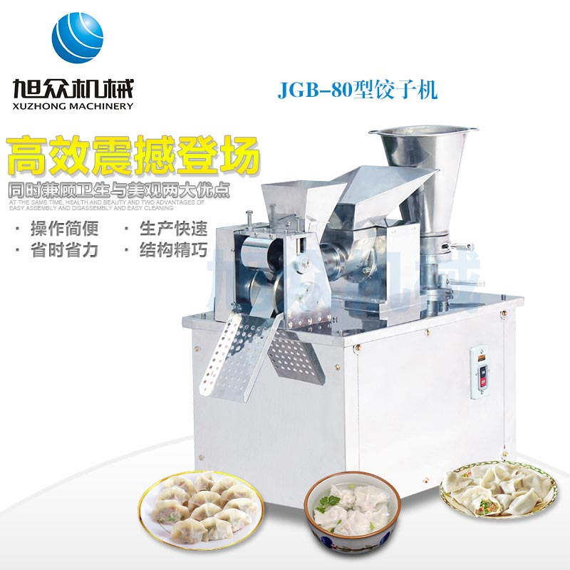 JGB-80型號(hào)餃子機(jī),本機(jī)是一款可生產(chǎn)各種肉餡、肉菜混合餡、全菜餡及其他種餡餃子的設(shè)備。包制出來(lái)的餃子可蒸、煮、炸、煎等多種調(diào)理。適用于賓館、飯店、餐廳、團(tuán)體食堂加工,幼兒園、速凍餃子生產(chǎn)。