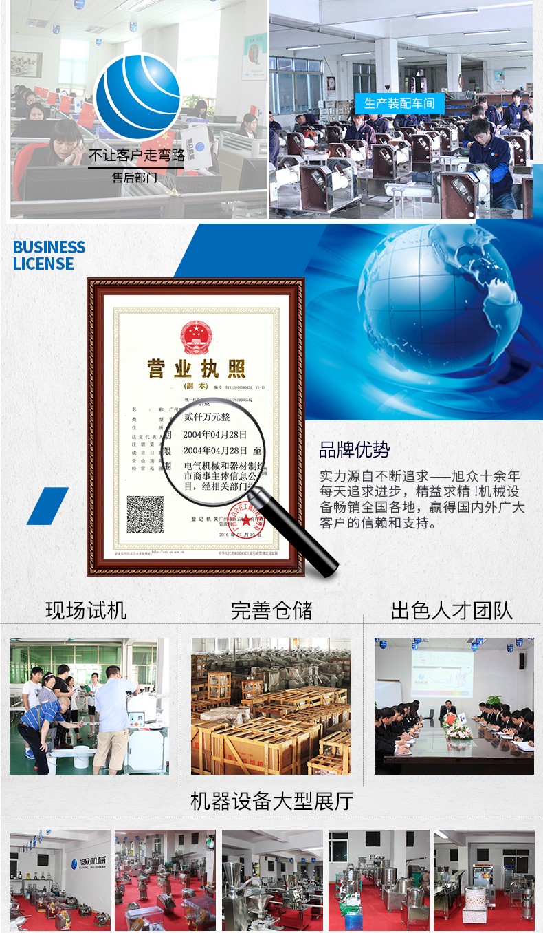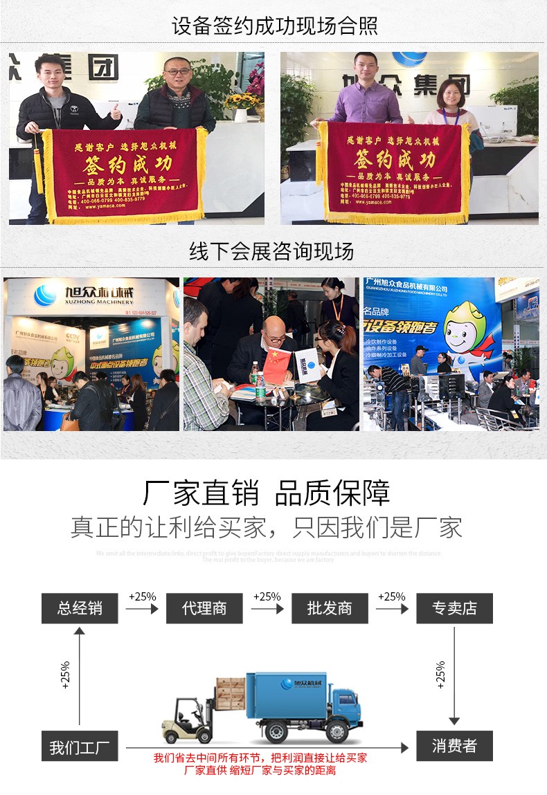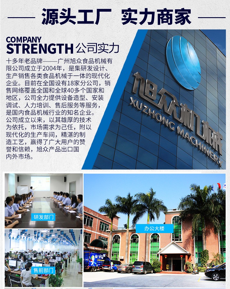 廣州旭眾食品機(jī)械有限公司是一家集科研開發(fā),生產(chǎn)設(shè)計(jì),營(yíng)銷服務(wù)為一體的現(xiàn)代化生產(chǎn)企業(yè)。現(xiàn)代化生產(chǎn)車間,精湛制造技術(shù),所產(chǎn)機(jī)械歷經(jīng)市場(chǎng)重重考驗(yàn),不斷贏得海內(nèi)外客戶的贊譽(yù)。