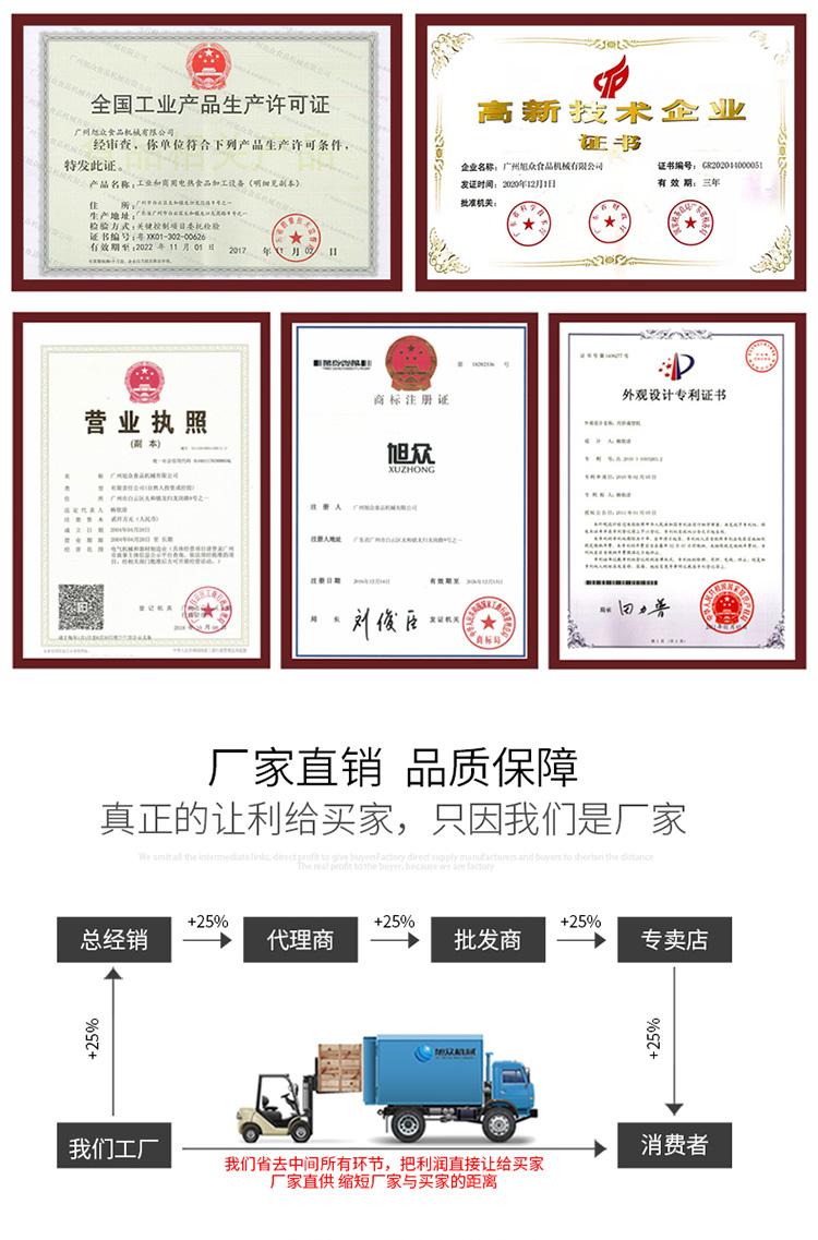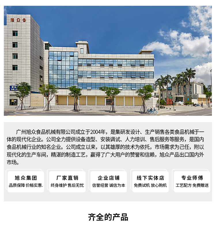 廣州旭眾食品機(jī)械有限公司是一家集科研開發(fā),生產(chǎn)設(shè)計(jì),營銷服務(wù)為一體的現(xiàn)代化生產(chǎn)企業(yè)。現(xiàn)代化生產(chǎn)車間,精湛制造技術(shù),所產(chǎn)機(jī)械歷經(jīng)市場重重考驗(yàn),不斷贏得海內(nèi)外客戶的贊譽(yù)。