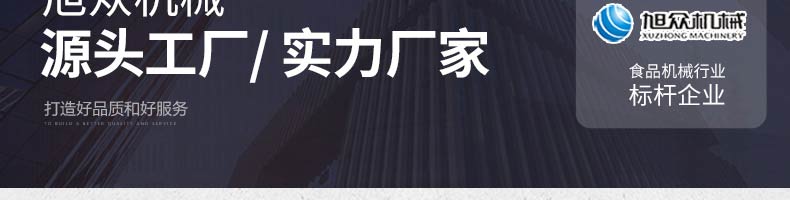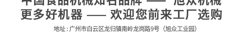 廣州旭眾食品機械有限公司是一家集科研開發(fā),生產(chǎn)設(shè)計,營銷服務(wù)為一體的現(xiàn)代化生產(chǎn)企業(yè)。現(xiàn)代化生產(chǎn)車間,精湛制造技術(shù),所產(chǎn)機械歷經(jīng)市場重重考驗,不斷贏得海內(nèi)外客戶的贊譽。