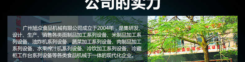 廣州旭眾食品機械有限公司是一家集科研開發(fā),生產(chǎn)設(shè)計,營銷服務(wù)為一體的現(xiàn)代化生產(chǎn)企業(yè)?,F(xiàn)代化生產(chǎn)車間,精湛制造技術(shù),所產(chǎn)機械歷經(jīng)市場重重考驗,不斷贏得海內(nèi)外客戶的贊譽。