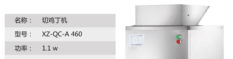 XZ-QC-A460切丁機,切雞丁機適合將帶軟骨的禽類,如雞、鴨、鵝、鴿、魚類等切成塊(?。睢1鞠盗性O(shè)備工作效率高,采用不銹鋼制作,美觀耐用,切割快速,少碎骨。