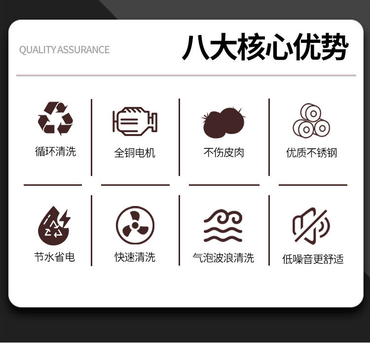 全自動果蔬氣泡清洗機,堅固耐用,整機采用質(zhì)不誘鋼。由防銹外層、鋼層底、強硬鋼外層組成,耐用不易生銹。澎湃大動力源于好,搭載變頻電機,強勁動力穩(wěn)定輸出噪音低,好的動力源于好“芯”