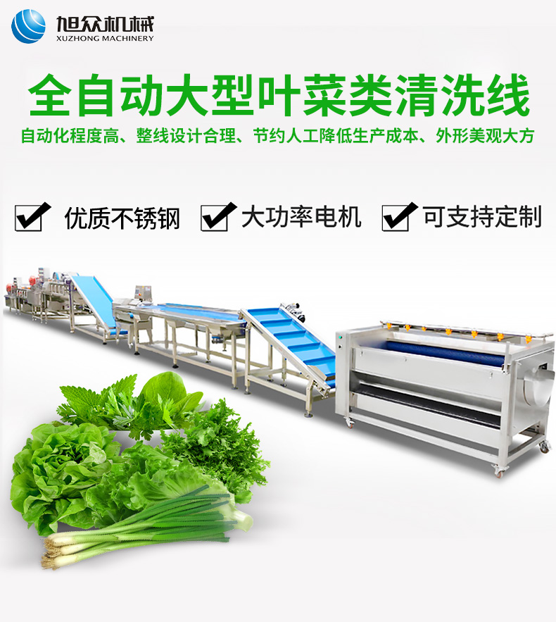 全自動大型葉菜清洗線,自動化程度高、整線設計合理、節(jié)約人工降低生產(chǎn)成本、外形美觀大方。主要用于葉菜加工,整線自動化凈菜生產(chǎn)此線將切割、清洗、風干設備連接成線,適合芹菜、韭菜菠菜、大白菜高麗菜、大蔥等葉菜類蔬菜加工生產(chǎn)