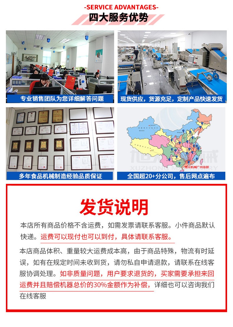 廣州旭眾食品機械有限公司是一家集科研開發(fā),生產(chǎn)設計,營銷服務為一體的現(xiàn)代化生產(chǎn)企業(yè)?,F(xiàn)代化生產(chǎn)車間,精湛制造技術(shù),所產(chǎn)機械歷經(jīng)市場重重考驗,不斷贏得海內(nèi)外客戶的贊譽。