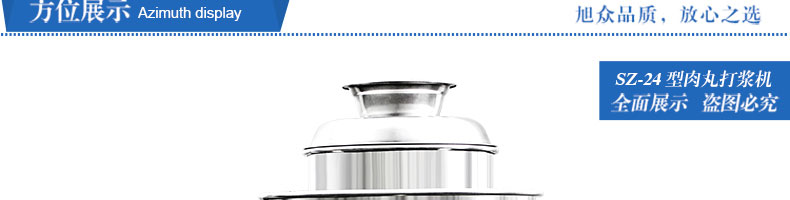 SZ-24型高速肉丸打漿機(jī),高速肉丸打漿機(jī)選用不銹鋼,生產(chǎn)過程中改善了肉質(zhì)脂肪纖維,生產(chǎn)出的丸子外表光滑細(xì)膩、低脂、口感爽脆、彈性好、韌性好,是潮州肉丸的專用打漿機(jī)。