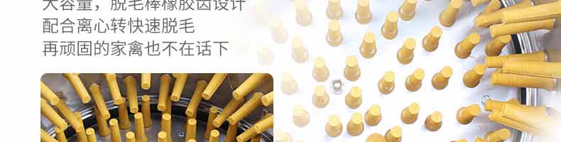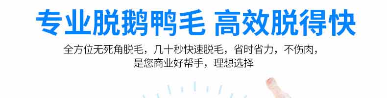 鵝鴨型脫毛機,本機用于雞、鴨、鵝宰殺后的自動脫毛,還可用于脫姜皮、脫馬鈴薯皮、脫魚鱗等農(nóng)產(chǎn)品。本機操作簡單,省力、省時間、工作效率相當(dāng)于十多個人的手工勞動。