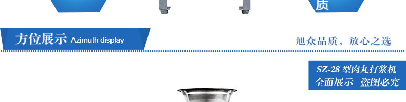 SZ-28型高速肉丸打漿機(jī),高速肉丸打漿機(jī)選用不銹鋼,生產(chǎn)過(guò)程中改善了肉質(zhì)脂肪纖維,生產(chǎn)出的丸子外表光滑細(xì)膩、低脂、口感爽脆、彈性好、韌性好,是潮州肉丸的專用打漿機(jī)。