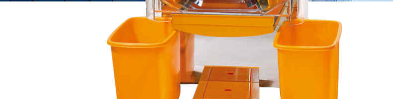2000E-4自動榨橙汁機,該機設計合理,采取擠壓式,鮮橙經(jīng)消毒、漂洗后,直接進入機器 ,自動剝皮、榨汁、過濾,現(xiàn)榨現(xiàn)飲,不僅適用于小飲店、水果店、飯店、賓館、酒吧、卡廳、茶秀、咖啡屋等,也適用于成功人士的家庭使用。