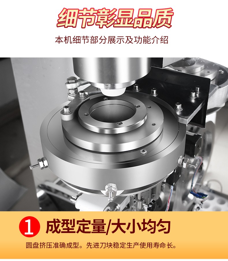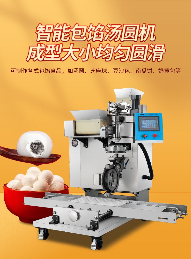 ◆觸摸屏自動控制搓圓擺盤一體成型技術,使得制品外形美觀,大小均勻,表面光亮細膩、口感柔滑,彈韌性佳。