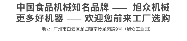 廣州旭眾食品機械有限公司是一家集科研開發(fā),生產(chǎn)設計,營銷服務為一體的現(xiàn)代化生產(chǎn)企業(yè)?,F(xiàn)代化生產(chǎn)車間,精湛制造技術,所產(chǎn)機械歷經(jīng)市場重重考驗,不斷贏得海內(nèi)外客戶的贊譽。