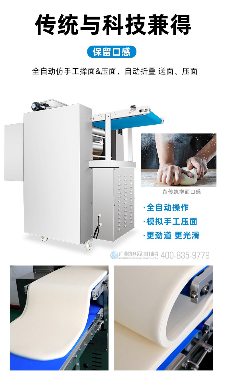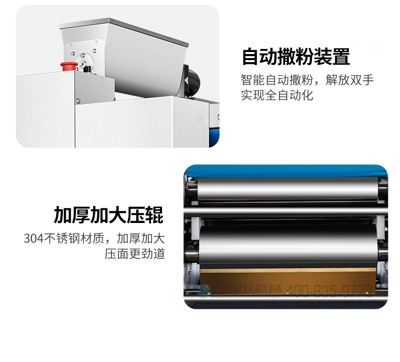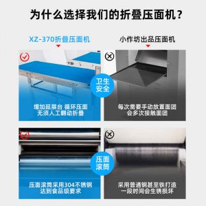 XZ-ZDYMJ370型自動(dòng)折疊壓面機(jī),整機(jī)不銹鋼機(jī)身打造,真材實(shí)料,選用不銹鋼材質(zhì),打造經(jīng)久耐用、防腐蝕。匠心細(xì)節(jié),彰顯品質(zhì)貼心設(shè)計(jì)。一鍵設(shè)定壓面次數(shù),智能定時(shí),只需設(shè)定好壓面次數(shù),就能全自動(dòng)壓面出面。