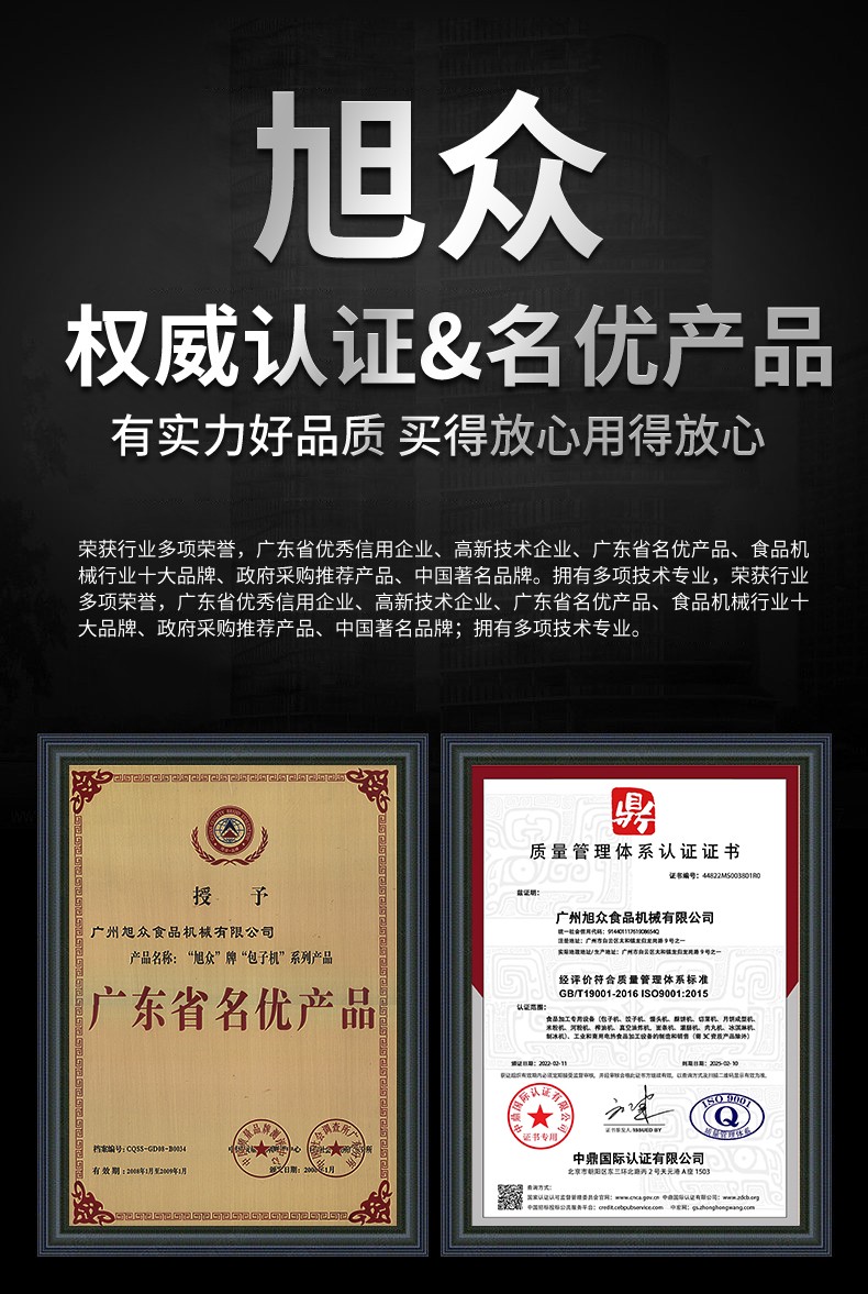 廣州旭眾食品機(jī)械有限公司是一家集科研開發(fā),生產(chǎn)設(shè)計(jì),營銷服務(wù)為一體的現(xiàn)代化生產(chǎn)企業(yè)?,F(xiàn)代化生產(chǎn)車間,精湛制造技術(shù),所產(chǎn)機(jī)械歷經(jīng)市場(chǎng)重重考驗(yàn),不斷贏得海內(nèi)外客戶的贊譽(yù)。