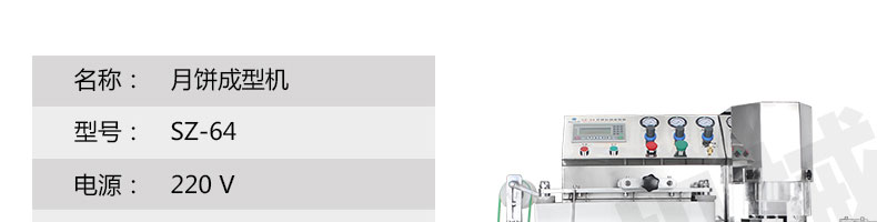 SZ-64月餅自動(dòng)成型機(jī),可同于制作各種月餅,適合印制各種月餅。適用于蛋糕房、休閑食品廠、食品加工產(chǎn)、面包房、月餅加工廠、超市、學(xué)校、食堂等各種工作場(chǎng)所??蓾M足不同客戶群體。免費(fèi)提供工藝技術(shù)。