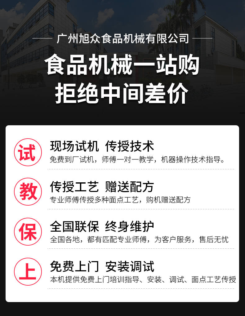 廣州旭眾食品機(jī)械有限公司是一家集科研開發(fā),生產(chǎn)設(shè)計(jì),營銷服務(wù)為一體的現(xiàn)代化生產(chǎn)企業(yè)?,F(xiàn)代化生產(chǎn)車間,精湛制造技術(shù),所產(chǎn)機(jī)械歷經(jīng)市場重重考驗(yàn),不斷贏得海內(nèi)外客戶的贊譽(yù)。